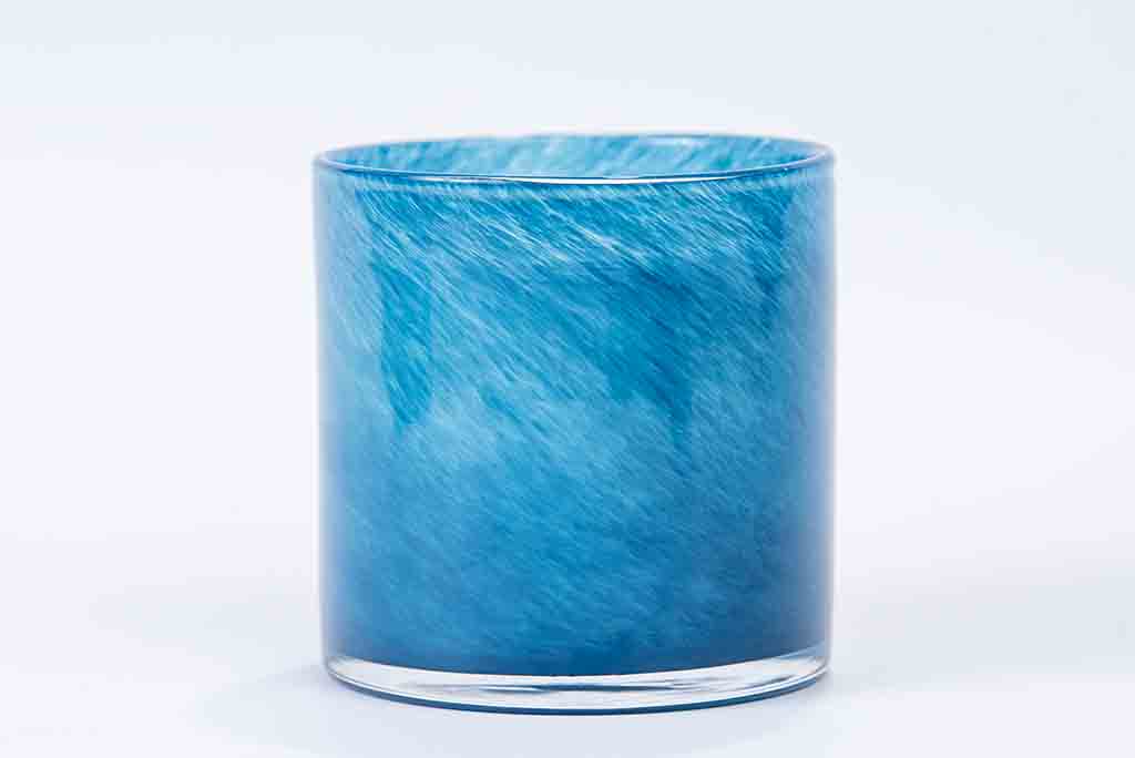 The look of this designer hand blown glass makes the "Blue Swirl" vessel truly exceptional. Filled with 15 ounces of luxurious coconut apricot blend of wax for a slow, beautiful burn every time. When the two wicks are lit, the flames create a beautiful warm glow thru the colored swirls. Because no two pieces are identical, there is not a matching lid. This candle is hand poured in the beautiful Napa Valley and comes in a classy designer box.