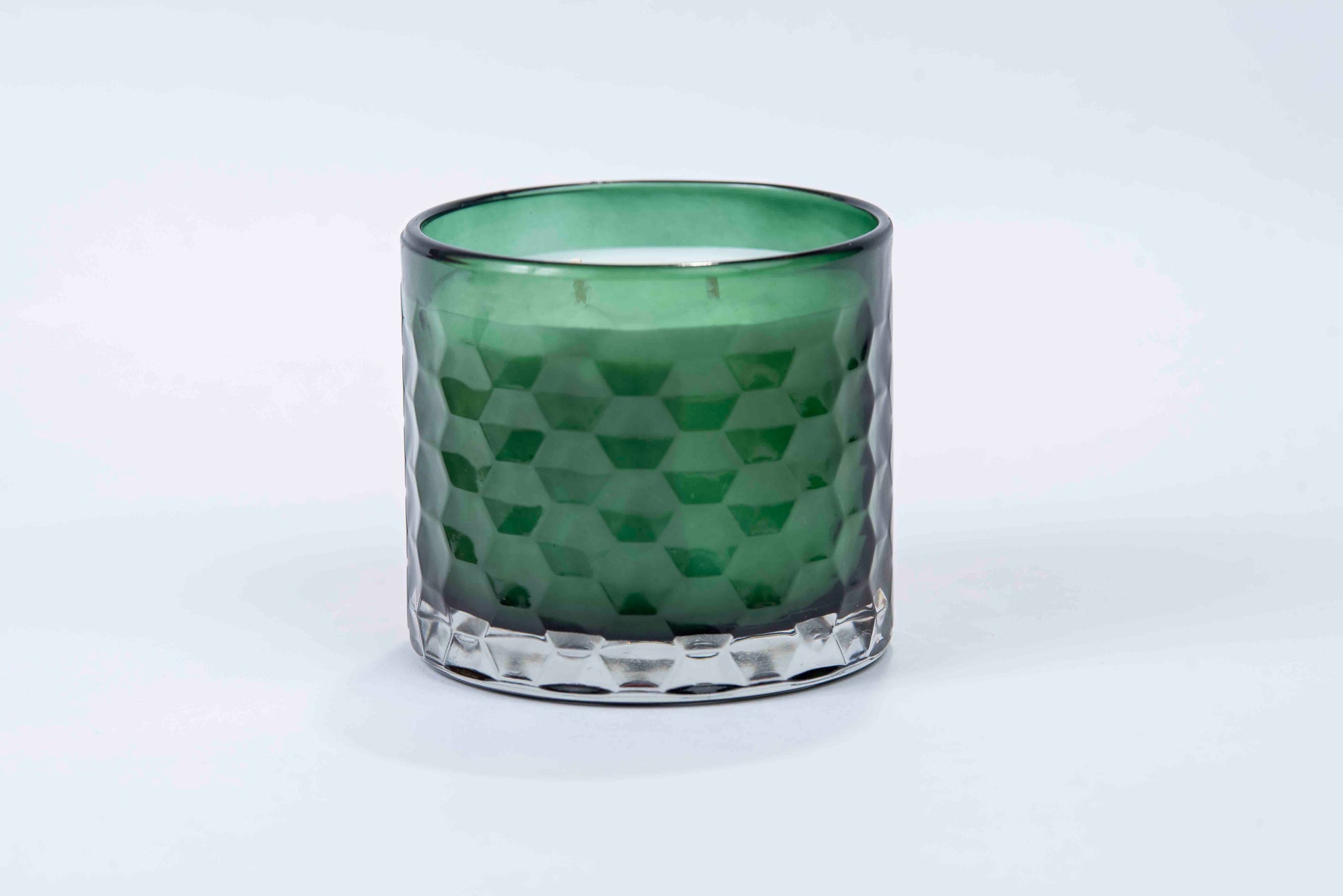 Filled with 12.5 ounces of luxurious coconut apricot blend of wax for a slow beautiful burn every time. When the two wicks are lit the flames create a beautiful warm glow when seen in the hexagon panels in the glass. Because no two pieces are identical, there is not a matching lid, instead this candle comes in a classy designer box.